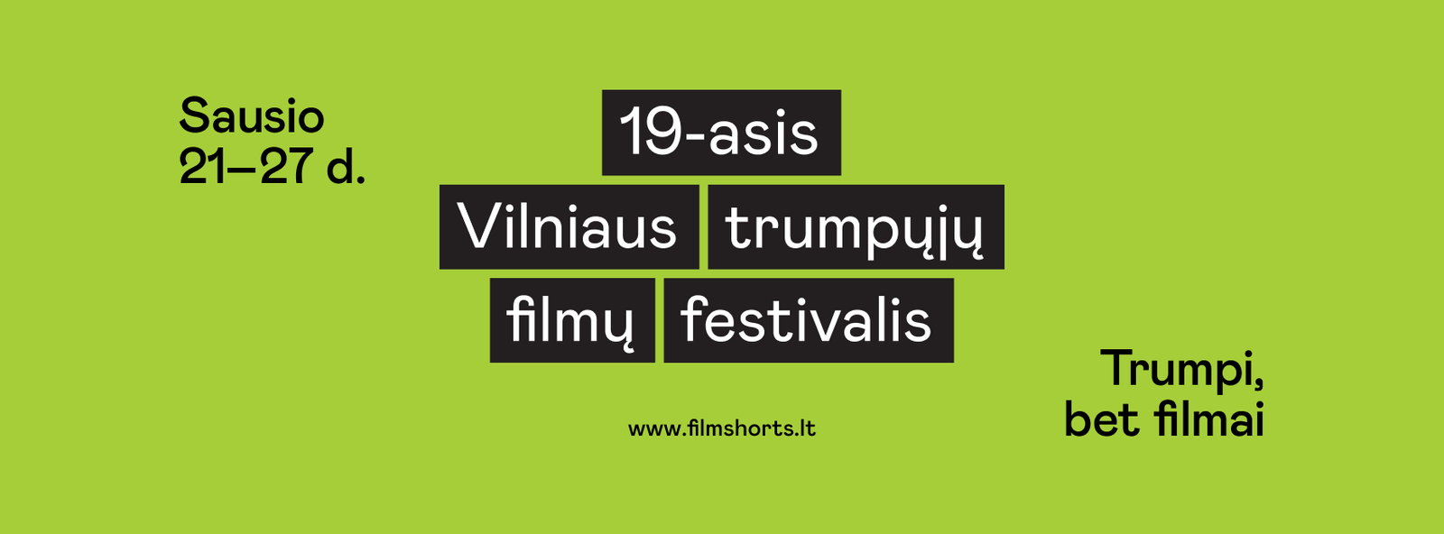 Naują kino festivalių sezoną kasmet atidarantis Vilniaus trumpųjų filmų festivalis vyks sausio 21–27 dienomis, ir prie kino bei namų ekranų 19-ąjį kartą pakvies susiburti trumpojo kino mylėtojus. Žiūrovų tradiciškai laukia daugiau nei šimtas filmų, suskirstytų į nacionalines ir tarptautines konkursines programas bei specialias temines programas, taip pat – kino šventę kuriantys renginiai. Nacionalinėse konkursinėse programose šiemet – dešimt nacionalinių premjerų, ir visi šie filmai varžysis ne tik dėl festivalio pagrindinio prizo „Grand Prix“, bet ir turės galimybę pretenduoti į „Oskarus“ bei Europos kino apdovanojimus.